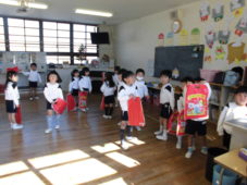 教室に帰ると、みんなビックリ!何とサンタさんからのプレゼントが置いてありました。みんな大喜びです。今日は少し早いクリスマスだったけれど、本当のクリスマスの日にもサンタさんはやってきてくれるかな?楽しみにして待っていようね