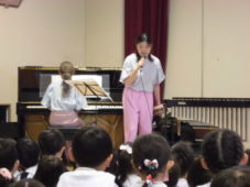 少し早いのですがクリスマス集会を行い、今年もアンサンブル宙(sora)さんをお招きして素敵な演奏を聞かせていただきました。みんなが知っているおなじみの楽器から、少し変わった珍しい打楽器も出てきて、子供たちは興味津々でしたよ。音楽に合わせて歌ったり踊ったり、楽しかったね。