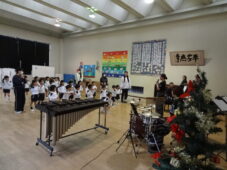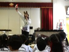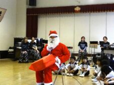 少し早いのですがクリスマス集会を行い、今年もアンサンブル宙(sora)さんをお招きして素敵な演奏を聞かせていただきました。みんなが知っているおなじみの楽器から、少し変わった珍しい打楽器も出てきて、子供たちは興味津々でしたよ。音楽に合わせて歌ったり踊ったり、楽しかったね。
