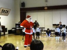 そうこうしているうちに、あわてんぼうのサンタさんが今年も来てくれました。理事長先生でもバスの先生でもない、本物の?!サンタさんの登場に子供たちは大喜びです。 質問コーナーではどんな質問にも答えてくれたので、次々とサンタさんの謎がとけていきます。