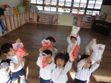 教室に帰ると、みんなビックリ!何と本当にサンタさんからのプレゼントが置いてありました。みんな大喜びです。今日は少し早いクリスマスだったけれど、本当のクリスマスの日にもサンタさんはやってきてくれるかな?楽しみにして待っていようね。